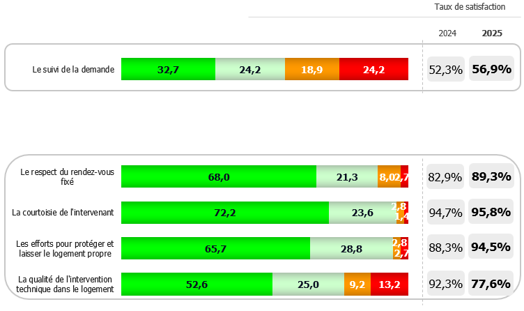 Cette enquête a été réalise par téléphone entre le 04 et 10 juin 2025 par un organisme externe « Règle de Trois » auprès d’un échantillon de 400 locataires sélectionnés aléatoirement.